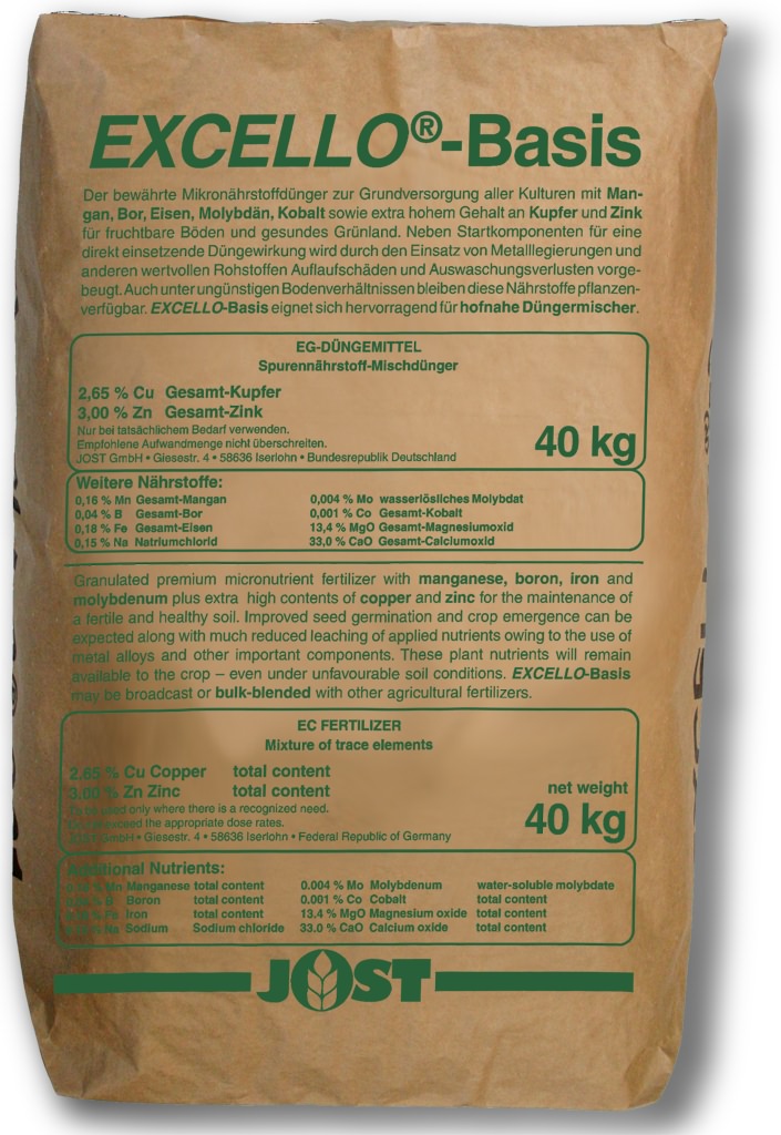 - schwere Böden EXCELLO Vorratsdüngung für 1 Jahr 75-100 (kg/ha) und für 4 Jahre 300 (kg/ha)