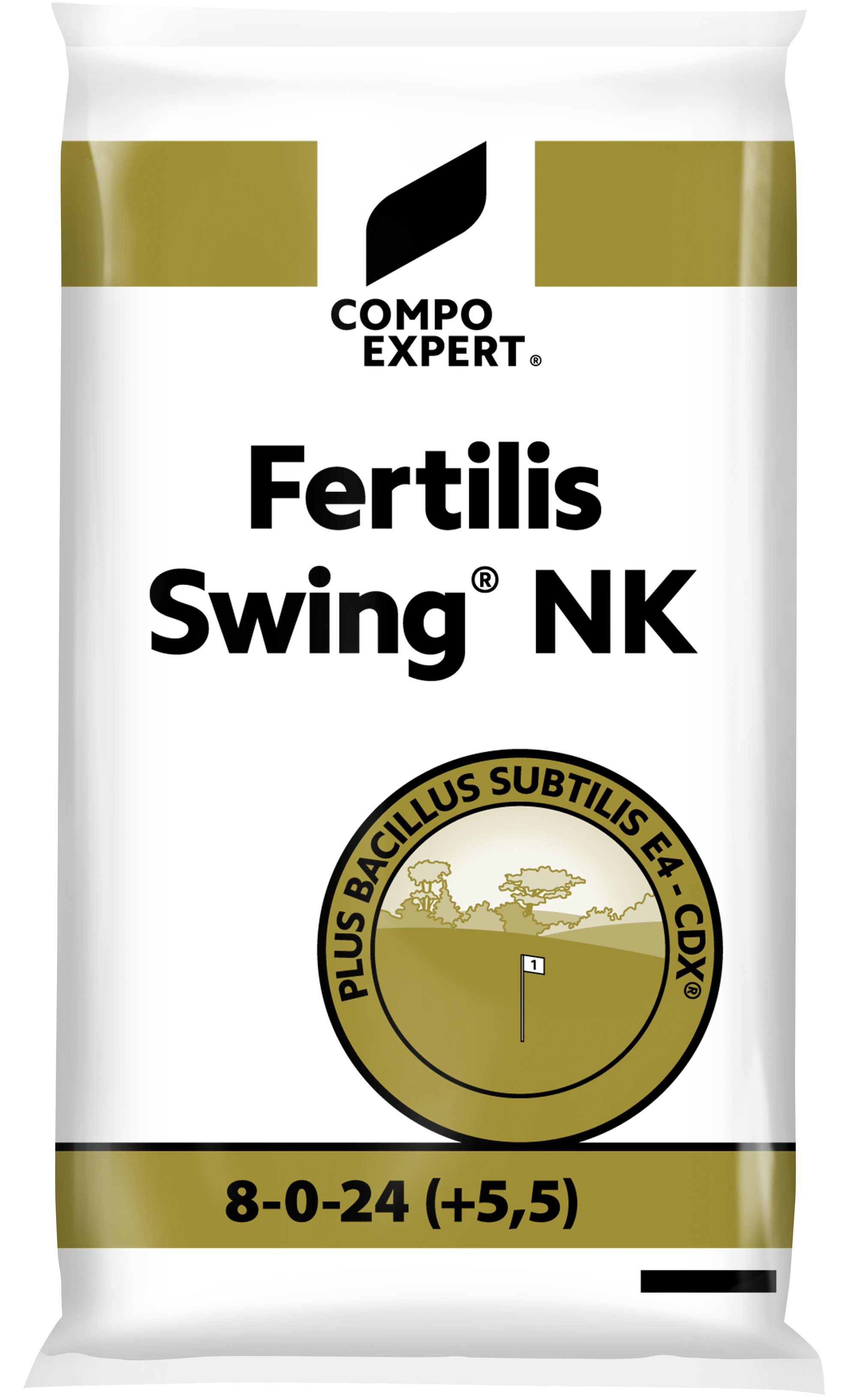 Fertilis Swing NK ist ein hochwirksamer mineralischer und kaliumstarker Grünsvolldünger. Dieses Verhältnis ist besonders günstig im Sommer und bei anhaltenden Trockenheiten zur Stärkung der Gräser und zum Schutz vor unnötigen Wasserverlusten. Die starke Kali- und verhaltene Stickstoffwirkung sind auch im Herbst für ein ausgeglichenes Wachstum sehr wichtig. Fertilis Swing NK setzt sich aus hochwertigen Nährstoffformen zusammen, die sich hervorragend lösen und damit schnell von der Oberfläche verschwinden. Die hohe Löslichkeit bringt auch eine sofortige Wirkung mit sich, die sofort nach der Bewässerung einsetzt. Boden und Gräser werden somit schnell mit ausreichend Kali versorgt. Die von den Gräsen aufgenommenen Nährstoffe werden nach und nach in Biomasse umgesetzt, so dass die sichtbare Wirkung 2–3 Wochen anhält. Kali und Magnesium liegen zudem in der für Gräser gut verträglichen Sulfatbindung vor, die den wichtigen Nährstoff Schwefel ausreichend zur Verfügung stellt.