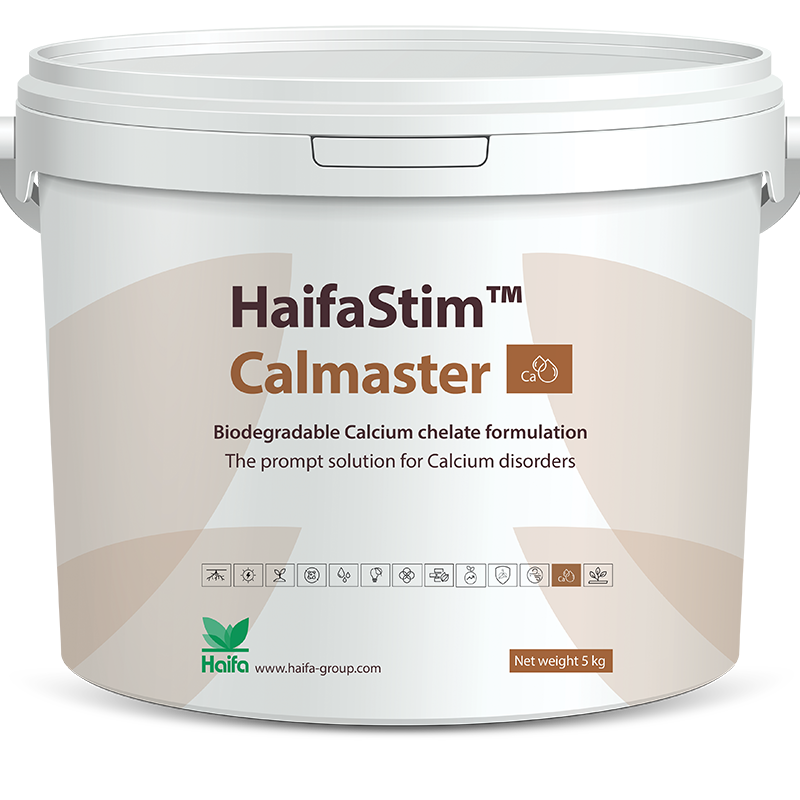 - HaifaStim Calmaster ist eine hochwertige Kalziumformulierung, die eine schnelle Aufnahme von Kalzium, durch Pflanzen und ihre Assimilation in Pflanzengewebe ermöglicht und so physiologische Störungen im Zusammenhang mit Kalziummangel verhindert.