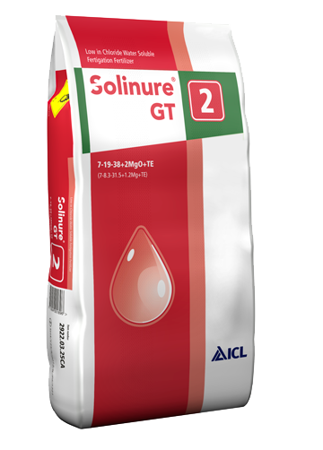 Solinure GT 2 ist ein kalibetontes Nährsalz mit hohem Phosphoranteil das sich hervorragend als Basissystem eignet. Solinure GT 2 ist ein ideales Produkt für die Kombination in Einzelnährstoffsystemen (A/B–Bak) oder als Nährsalz, speziell für den Einsatz im Freiland und im geschützten Anbau.