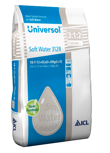 Universol Soft Water 312R beinhaltet NPK, Mg und ein komplettes Paket an Spurenelementen. Dank einem stickstoffbetonten Nährstoffverhältnis von 3:2 und einem hohen Kalziumgehalt ist dieses Produkt perfekt für die Wachstumsphase geeignet.