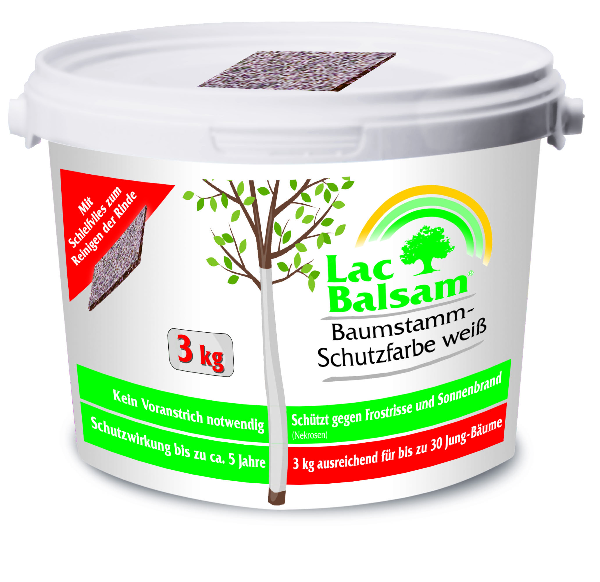 Schon die Obstbauern vor über 100 Jahren kannten das Problem und hatten mittels Weißanstrich eine sehr effektive Schutzmethode für Neupflanzungen, freigestellte Bäume und empfindliche Laubgehölze entwickelt. Dabei trat allerdings das Problem auf, dass der Schutzanstrich sehr schnell vom Baumstamm durch Regen, Wind, Temperaturschwankungen und Sonne entfernt wurde. Wir haben nun die langjährig bewährte Technologie vom LacBalsam® Wundverschluss dazu genutzt, um die LacBalsam® Baumstamm-Schutzfarbe weiß zu entwickeln. Ein hoch effektiver Schutz für den Stamm von allen Laubgehölzen.