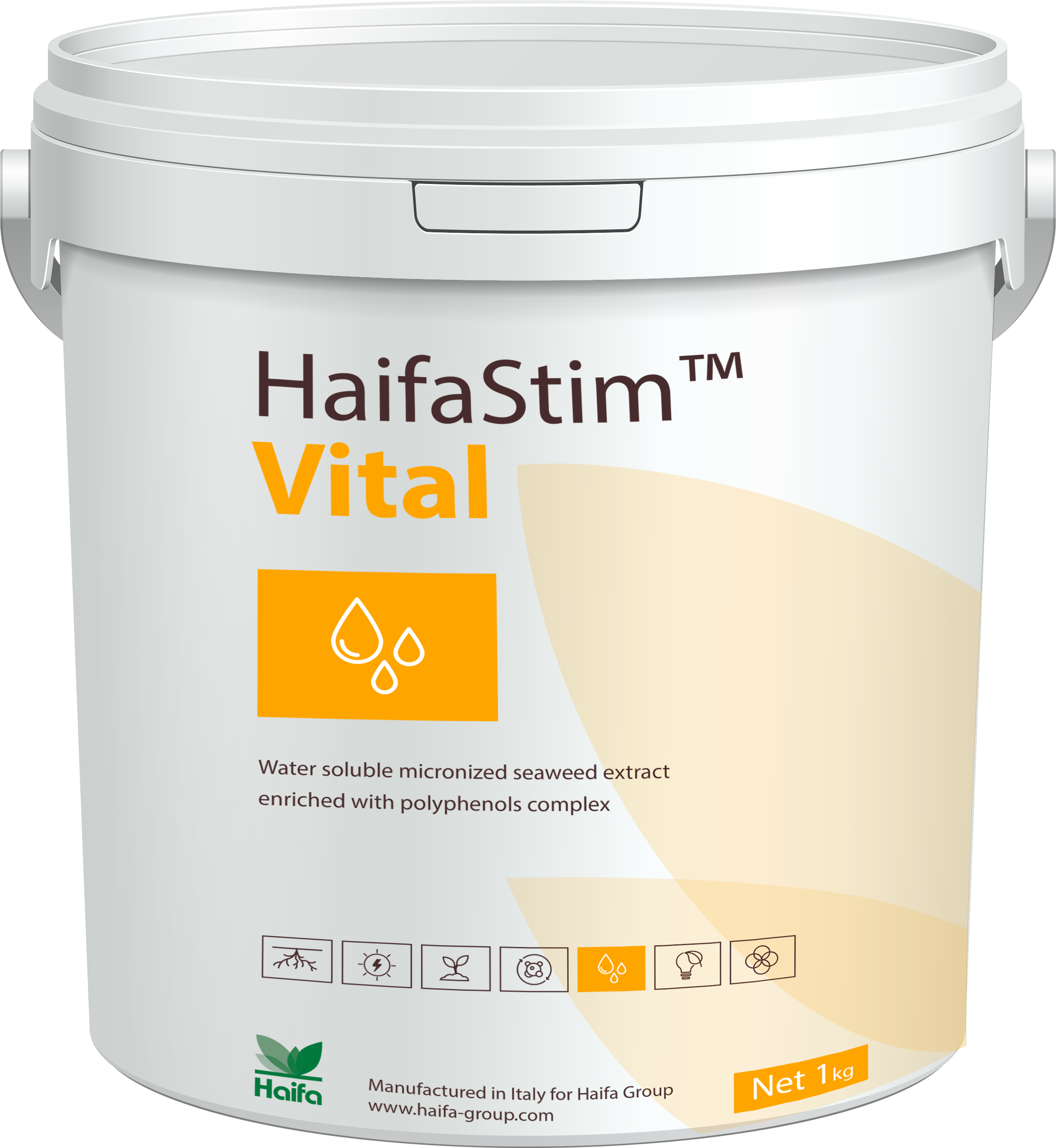 HaifaStim™ Vital enthält eine Reihe von aufeinander abgestimmten, pflanzenphysiologisch aktiven Komponenten. Diese wirken darauf hin, Wachstumsprozesse, die Ertragsleistung und die Erntequalität zu verbessern. Enthält Ascophyllum nodosum (Braunalge)