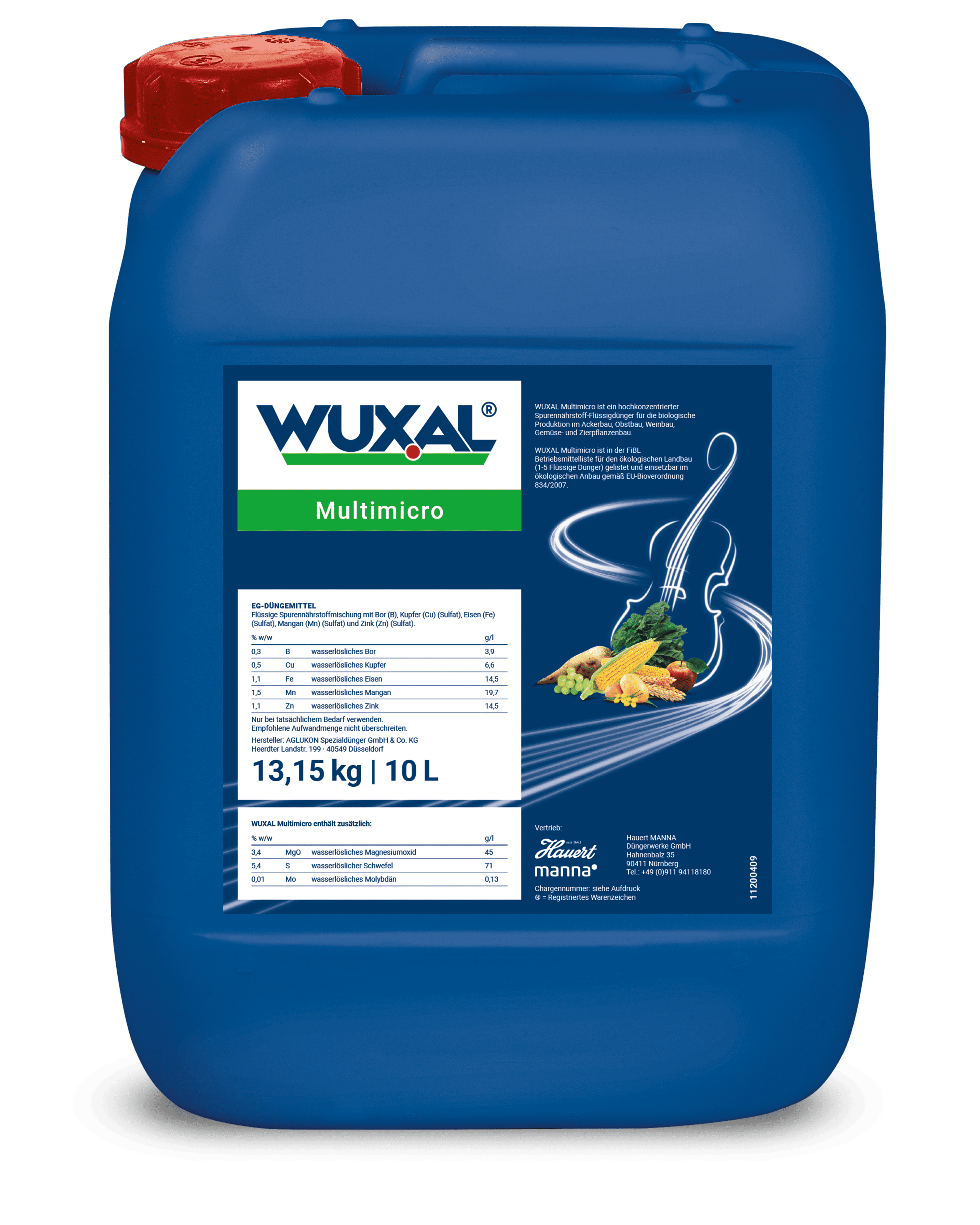 WUXAL Multimicro ist ein hochkonzentrierter Spurennährstoff-Flüssigdünger für die biologische Produktion im Ackerbau, Obstbau, Weinbau, Gemüsebau und Zierpflanzenbau. Das Produkt ist gelistet in der FiBL Betriebsmittelliste für den ökologischen Landbau (D- 1- 7 Flüssige Dünger) und einsetzbar im ökologischen Anbau gemäß EU-Bioverordnung 834/2007.