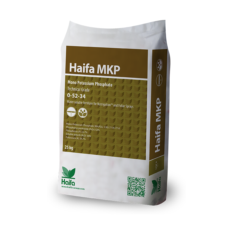 Haifa MKP™ Tech ist ein vollständig wasserlöslicher Dünger für die Nutrigation™ und Blattdüngung und deckt den Phosphat- und Kaliumbedarf der Kultur durch die gesamte Pflanzenentwicklung hindurch, besonders für die Ausbildung eines gesunden Wurzelwerks. Haifa MKP™ Tech kann mit anderen Düngemitteln kombiniert werden und ist für die Herstellung von Düngemittelmischungen und für die Herstellung von flüssigen Düngemitteln geeignet.