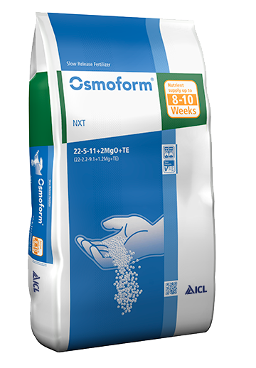 Osmoform® NXT wurde für die Nachdüngung in der Containerbaumschule und für Containerstauden entwickelt. Dank der langsam fließenden Stickstoffformen wird eine langanhaltende und gleichmäßige Stickstoffversorgung über 8 bis 10 Wochen sichergestellt. Intergierte Spurenelemente mit hohem Eisenanteil sorgen zudem für eine schnellen Begrünungseffekt.