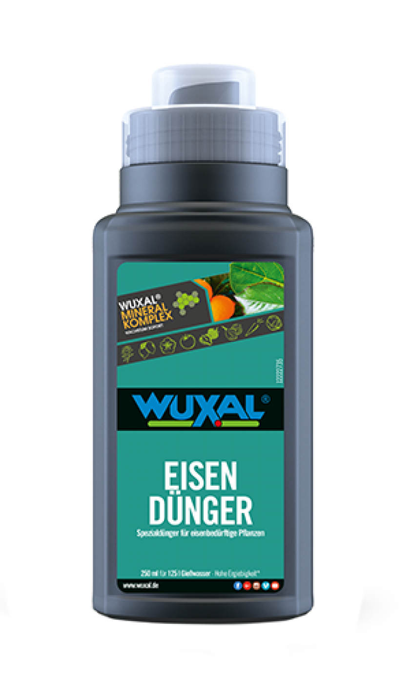 WUXAL Eisendünger ist nicht lichtempfindlich und bleibt auch unter alkalischen Bodenverhältnissen stabil. WUXAL Eisendünger ist ein Spezialdünger für Pflanzen mit hohem Eisenbedarf oder bereits beginnenden Mangelsymptomen.